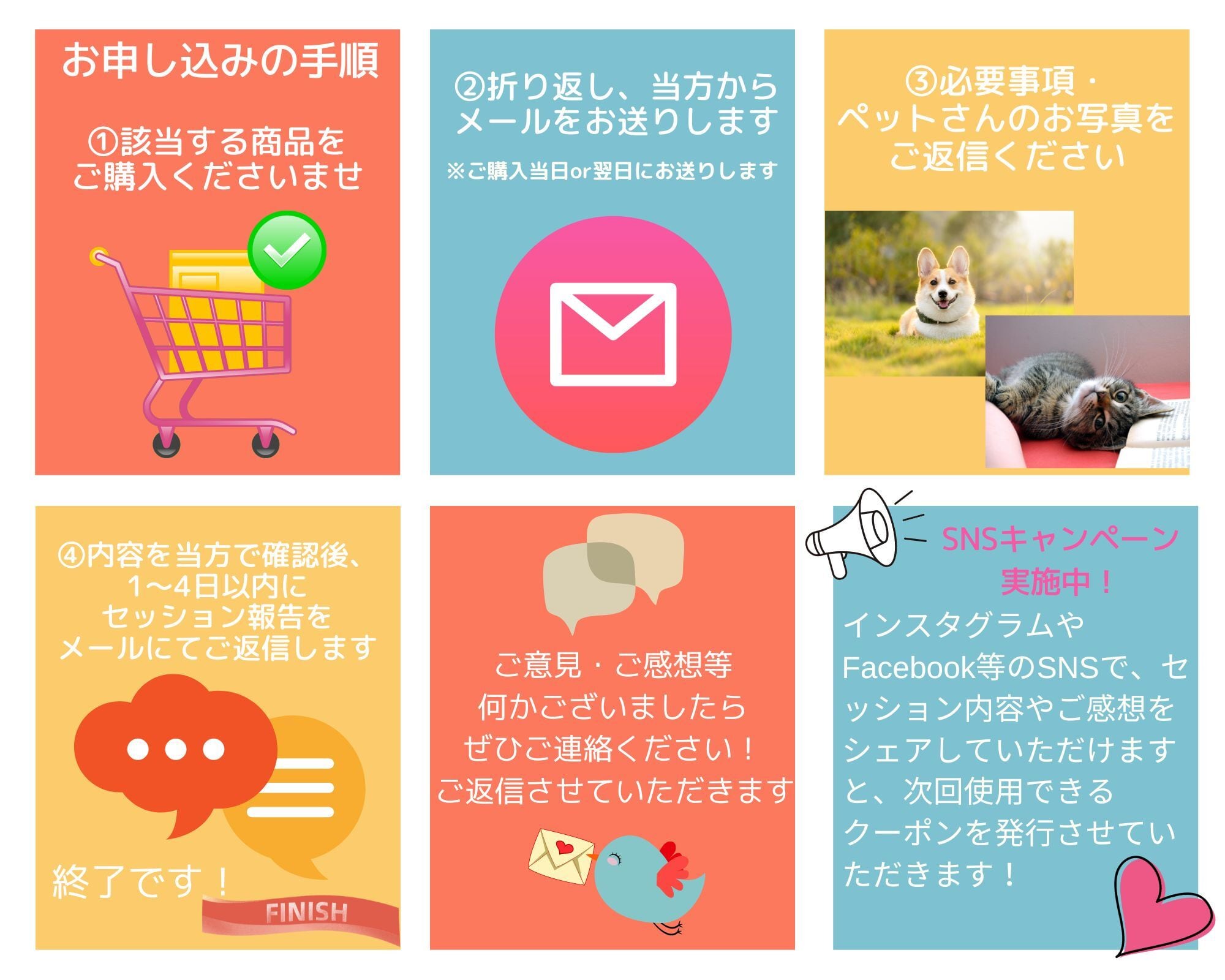 ・ご購入頂いた後、こちらからペットさんの写真や質問事項に関して、ご返信いただく内容詳細をメールにてお送り致します。