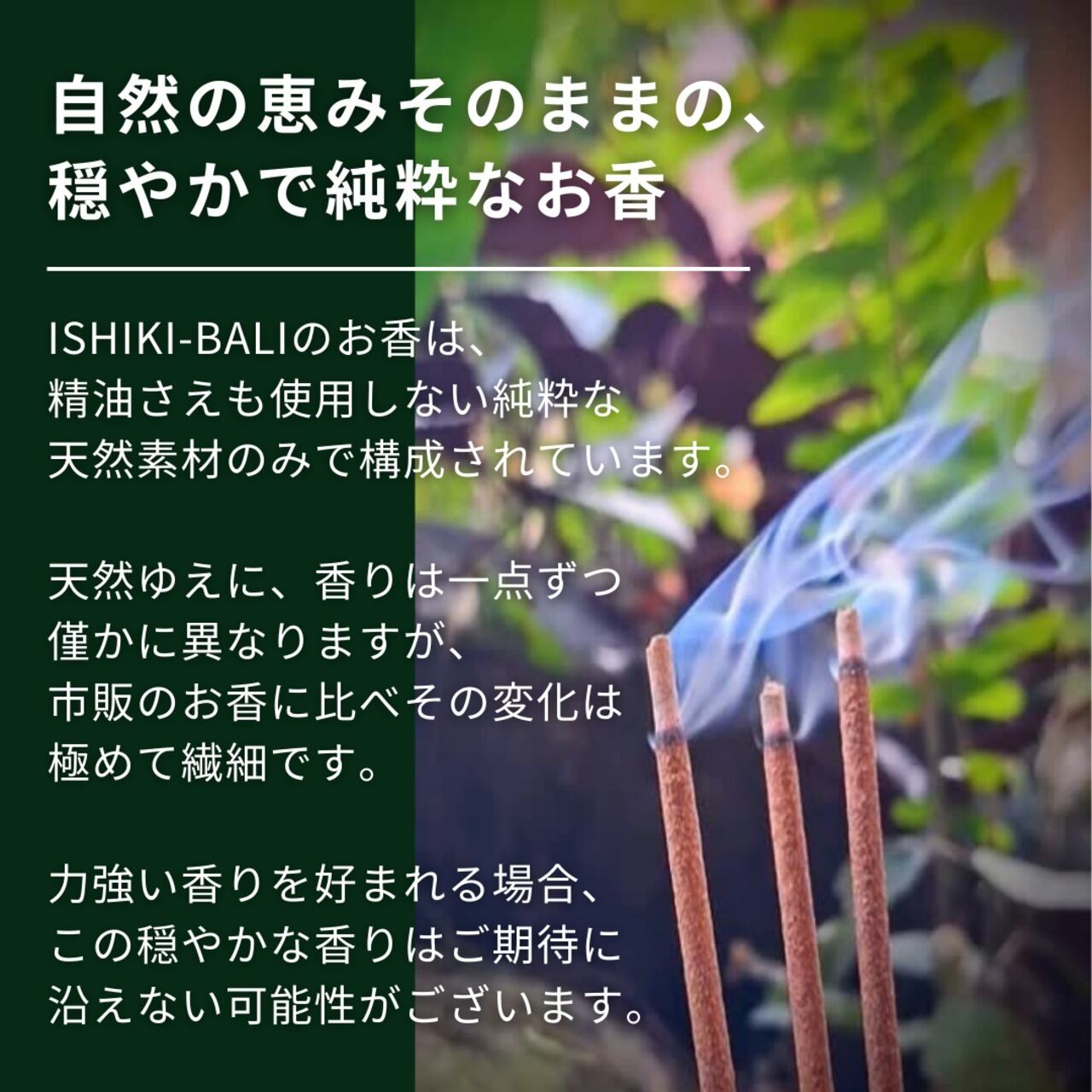 ISHIKI-BALIのお香は、漢方由来の天然素材100%で仕立てています。