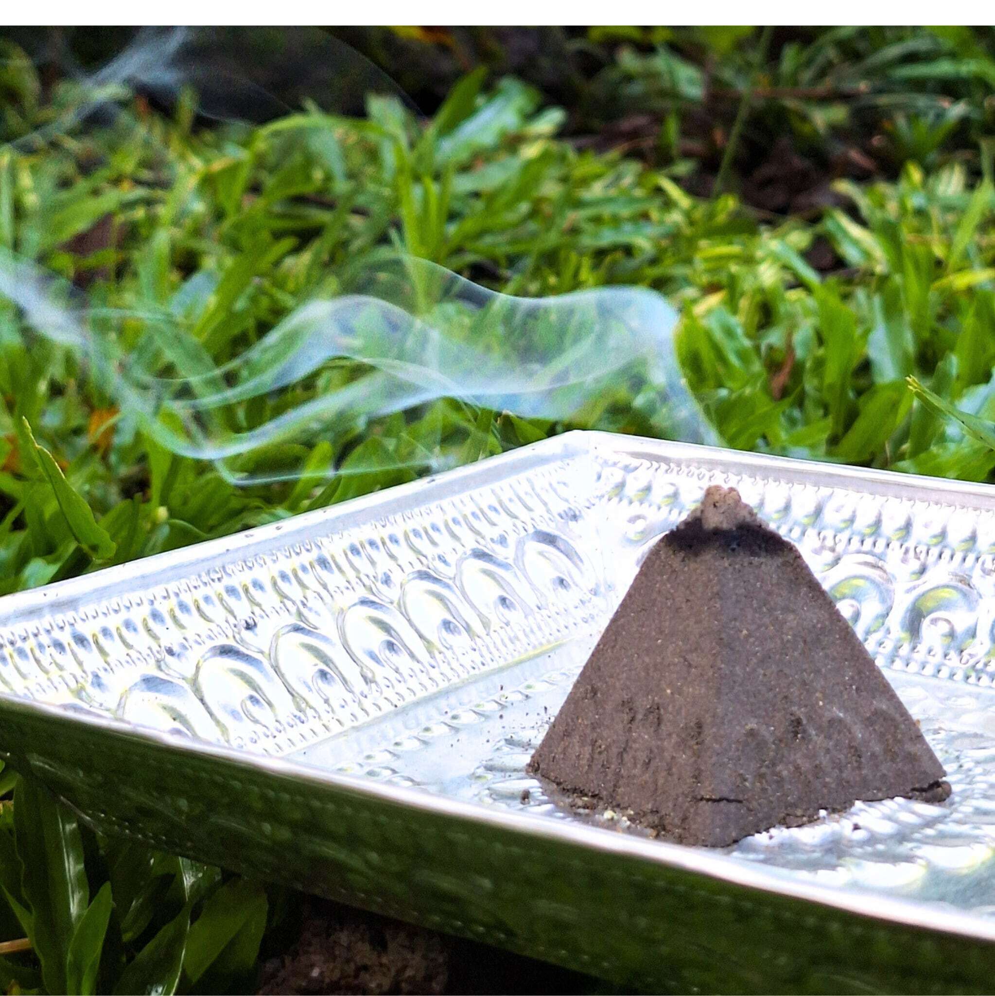 オリジナルのピラミッド型で成型し、頂点に点火→炎を消して煙だけをゆっくり広げる。瞑想や読書、来客前の空間整えに。煙が時間とともに奥行きを増し、場を静かに包み込む。